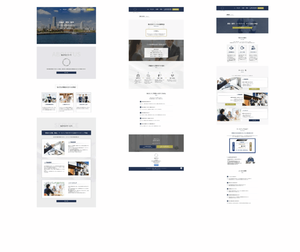 買取・改装・販売・リースバックのワンストップ対応を、信頼感あるデザインと分かりやすい構成で表現いたしました。