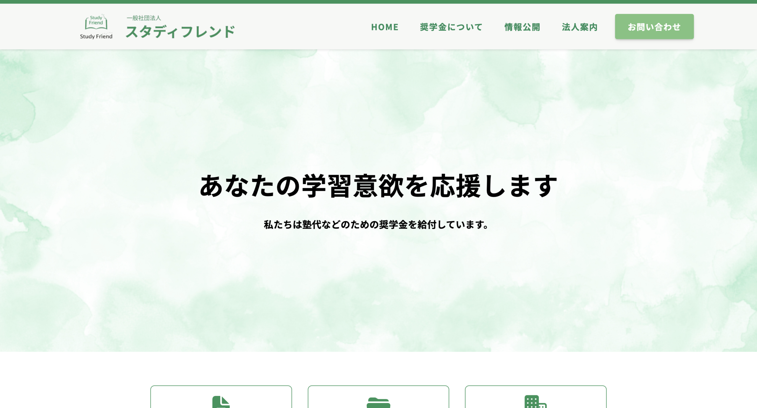 奨学金給付事業を行う一般社団法人「スタディフレンド」様の公式サイトを制作しました。